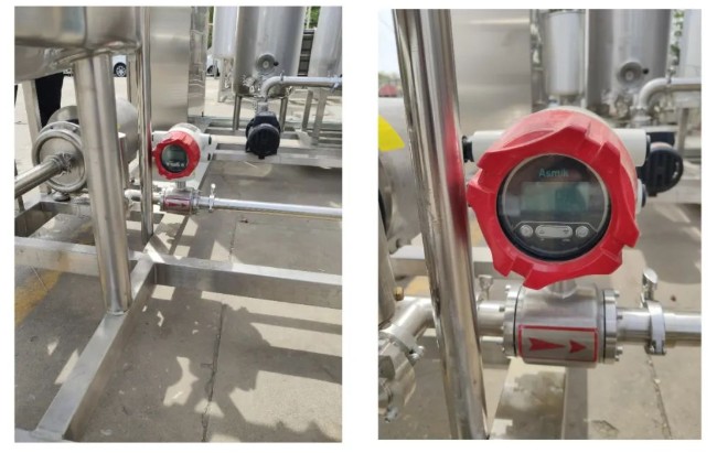 此次應用于巴氏殺菌機是米科衛生型不銹鋼本體電磁流量計。該款流量計采用了304不銹鋼的本體材質,保證了生產過程中無雜質滲入,同時采用卡箍安裝的形式,確保接口部分易拆卸易清洗易消毒。在信號輸出上,該款流量計采用了4-20mA模擬量及RS485數字量的雙模式輸出,有效匹配各類接收設備。